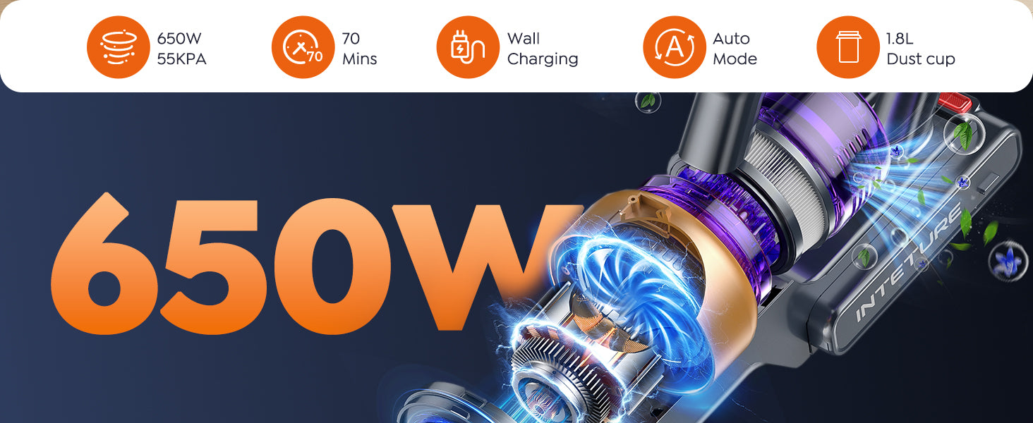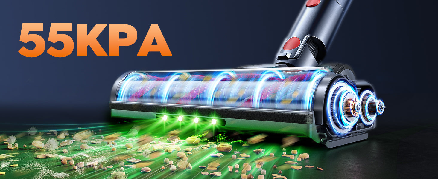 - 【650W 55KPA Powerful Suction】This cordless vacuum cleaner is equipped with the latest 650W brushless motor, delivering a formidable suction power of up to 55KPA. It effortlessly removes surface debris and deep-seated dirt from hardwood floors and carpets, efficiently eliminating dust, pet hair, and food residues.